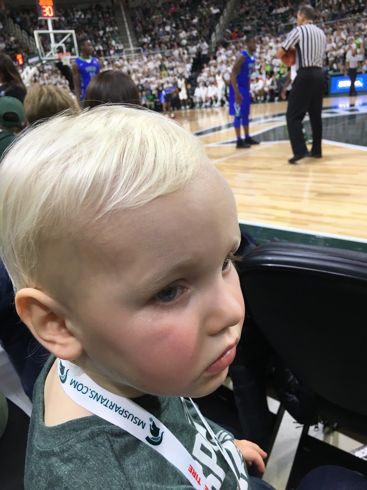 he was into the band. the game. the people and avoiding sparty [until the end, then he gave a wave and wanted him to come over hehe]